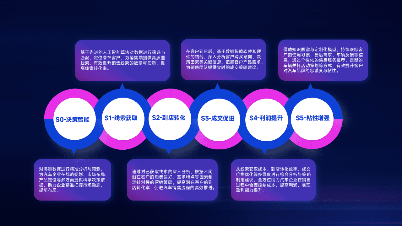 通过拓宽潜在客户来源、、、、优化线索分配并提高到店转化率,,,以增强销售效率。。。同时,,利用线索数据不断优化分析模型,,有效提升转化率,,,扩大营销影响力。。。。